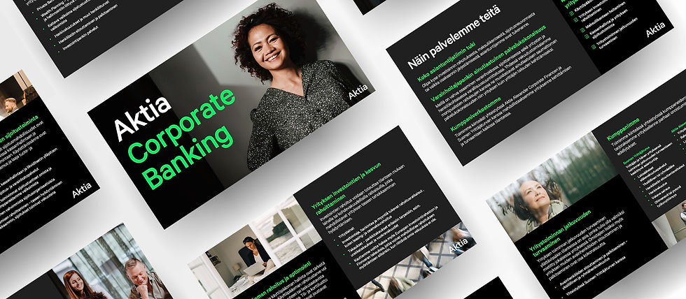 Helping marketing, communications and IR teams in visual design needs in various platforms and medias. From front page ads to sales presentations, social media ads and brand photo shoots to guiding people with brand material usage.